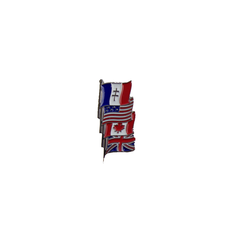 This metal pin represents the flags of the Allies.