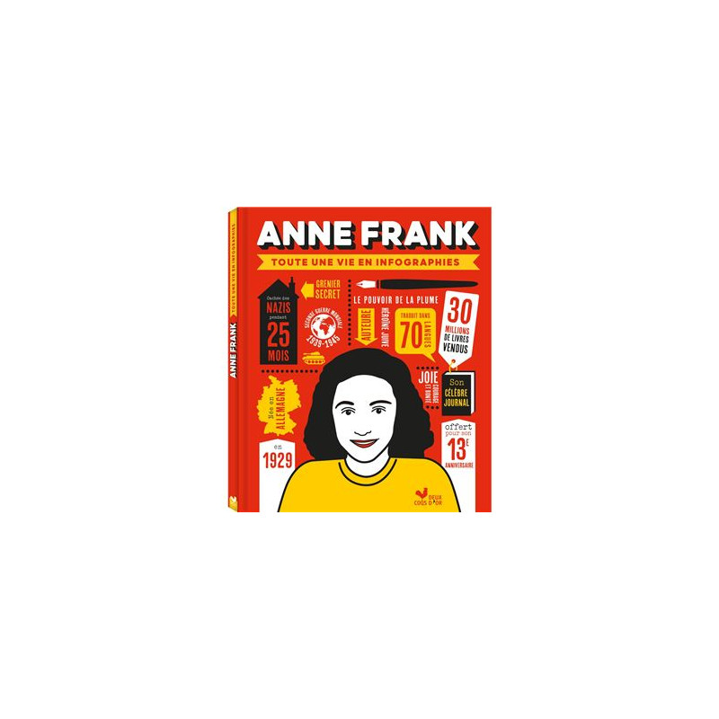 Un contenu riche qui propose : son histoire, celle de sa famille, de son journal, des faits moins connus pour découvrir le contexte historique de son époque. Une maquette très dynamique et moderne avec de nombreuses illustrations et infographies, ainsi que des cartes. Des infos chiffrées, des encadrés « focus » sur des sujets de société, ainsi qu’une frise chronologique en début d’ouvrage situent Anne Franck dans son temps et permettent à l'enfant de se repérer.