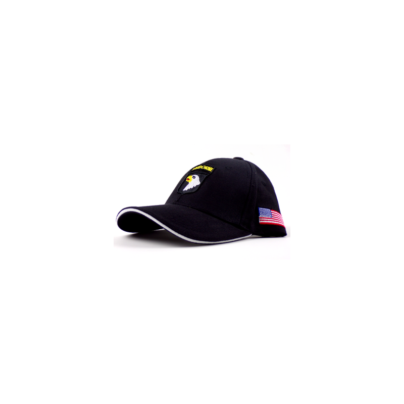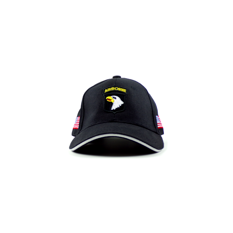 Casquette 101e airborne noire avec drapeaux USA sur les côtés.