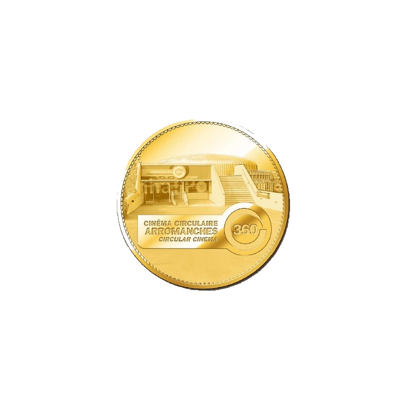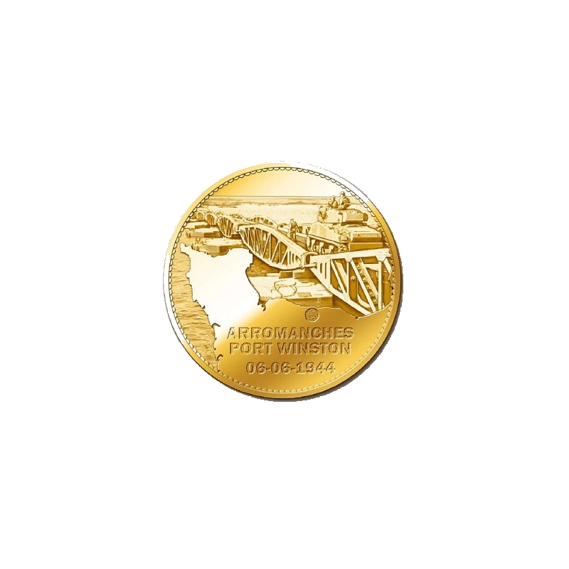 La célèbre médaille souvenir Arthus-Bertrand présentant le Cinéma circulaire Arromanches 360 ainsi que le port artificiel "Port Winston".