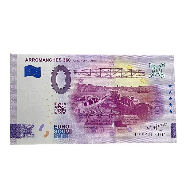 Véritable billet d'une valeur faciale de 0 (zéro) euro. Chaque billet de cette collection dispose d'un numéro unique.