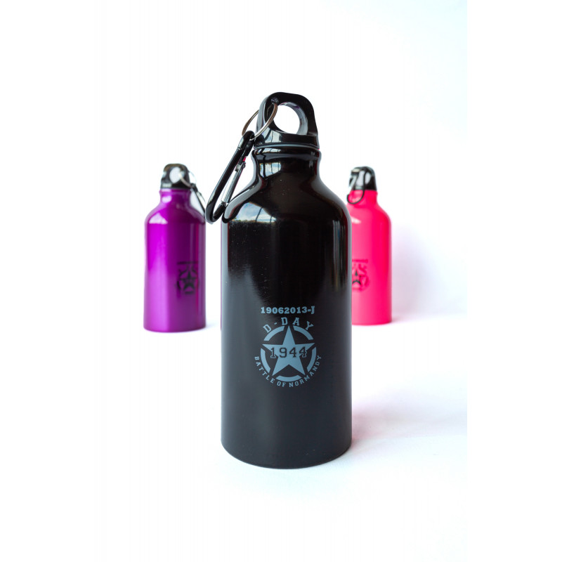 Small metal bottle with carabiner attached to the cap. US D-day star decoration.